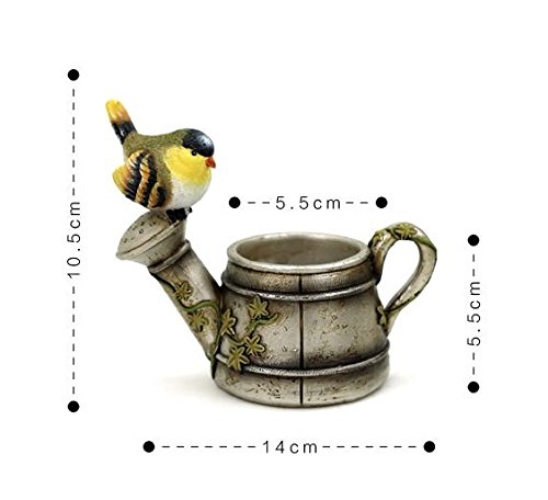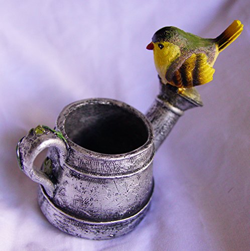 小鳥 プランター 植木 鉢 じょうろ 型 ガーデニング アンティーク (シルバー)