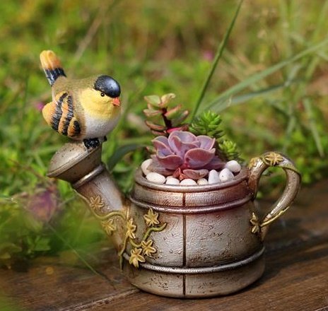 - ●かわいい!小鳥がじょうろにとまっているデザインの植木鉢♪