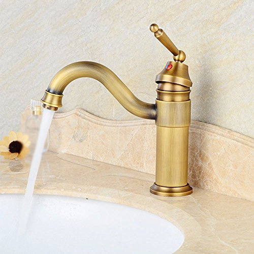 awxjxシンク蛇口バスルームヨーロッパレトロスタイルと銅ホットとコールド単一穴