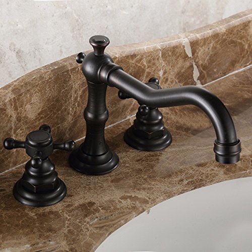 awxjx Washroomシンクミキサータップ銅ヨーロッパアメリカレトロスタイルブラックWash BasinバスルームBrushedホットとコールド3つ穴Bathtub