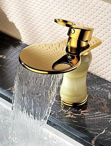 awxjxシンクタップ銅ヨーロピアンスタイルレトロスタイルWaterfallゴールドJade Basinホットとコールドバスルーム