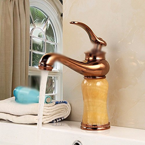 awxjx Washroomシンクミキサータップ銅ヨーロッパレトロスタイルWash Basinゴールドシングルハンドル1つ穴Ceramics翡翠ホットとコールドSit