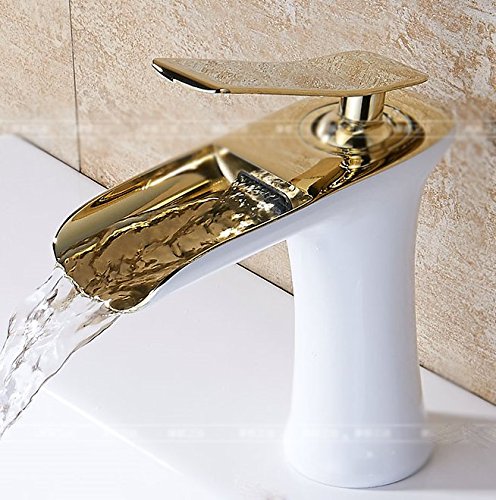 awxjx Washroomシンクミキサータップ銅WaterfallホワイトゴールドHot and Cold Wash Basinバスルームバスルーム