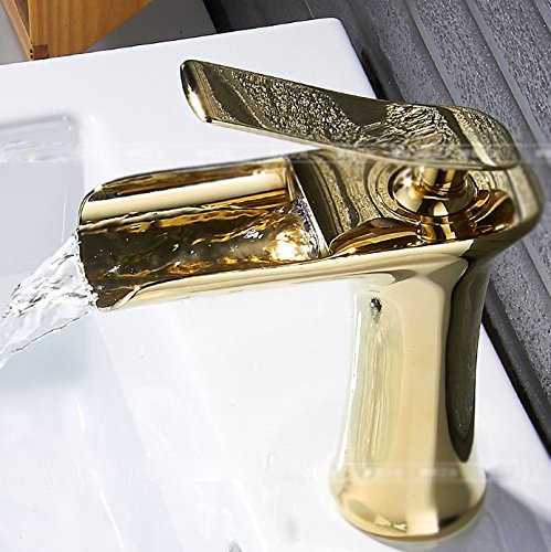 awxjx Washroomシンクミキサータップ銅WaterfallホワイトゴールドHot and Cold Wash Basinバスルームバスルーム