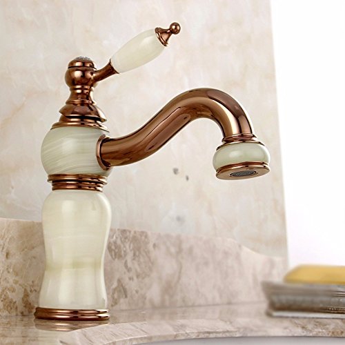 awxjx Washroomシンクミキサータップ銅ヨーロピアンスタイル洗面台ホットとコールドSit Cold Alone Jade Ceramicsゴールド