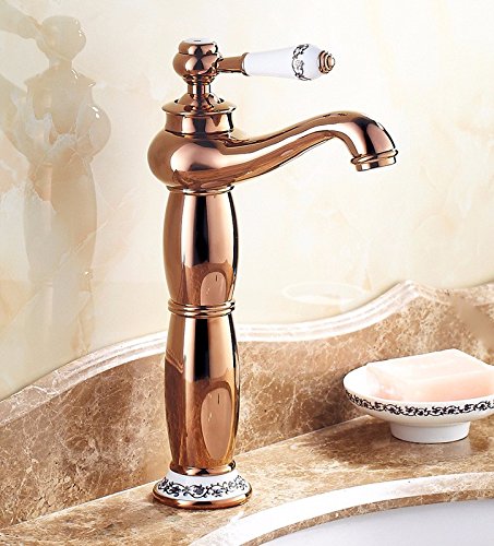 awxjx Washroomシンクミキサータップ銅ヨーロッパアメリカスタイル浴室ホットとコールドクロム洗面台Sitゴールドシングルハンドル1つ穴