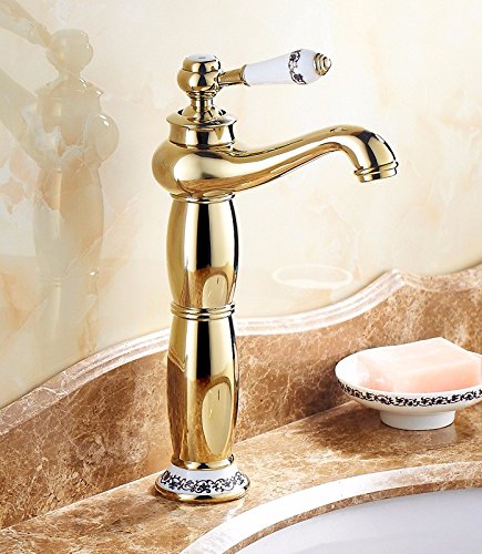 awxjx Washroomシンクミキサータップ銅ヨーロッパアメリカスタイル浴室ホットとコールドクロム洗面台Sitゴールドシングルハンドル1つ穴