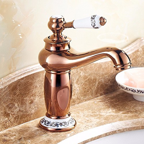 awxjx Washroomシンクミキサータップ銅ヨーロッパアメリカスタイル浴室ホットとコールドクロム洗面台Sitゴールドシングルハンドル1つ穴