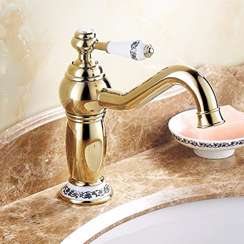 awxjx Washroomシンクミキサータップ銅ヨーロッパアメリカスタイル浴室ホットとコールドクロム洗面台Sitゴールドシングルハンドル1つ穴