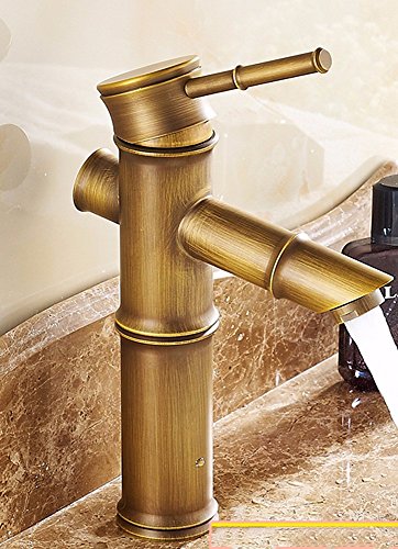 awxjxシンクタップヨーロッパレトロスタイル銅ホットとコールド洗面台竹Brushed Sit