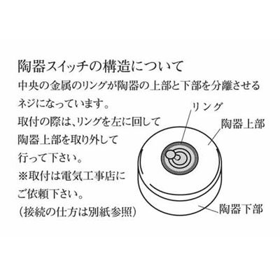 - 5.仕様:3路スイッチ 6.備考:2個使用することで2箇所でのON-OFF使用も可能です。 スイッチの周りのリングが上下のネジになっております。 取付けの際は、まずリングを左に回して、外してください。 ※取付けは電気工事店にご依頼下さい。