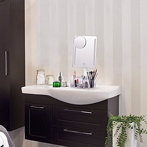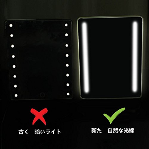 - 【28個LEDライト&自由調光】ミラーのサイドに帯状で、自然な内蔵式LEDイルミネーションが化粧ムラを防ぎ、目元や口元など凹凸の部分に影をつけることなく均等に顔を映し出し、細部に渡るメイクアップを可能です。前面のタッチボタンで好きみに合わせて簡易に明るさを調整できます。暗所や薄暗い環境下でもメイクが楽しめます。