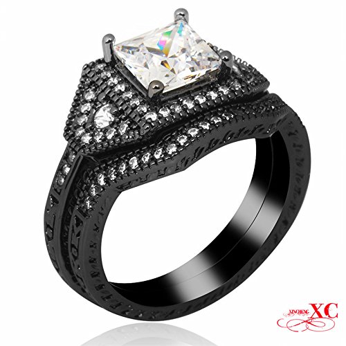 Ayt Vintage Lady 's結婚指リング2個FineジュエリーホワイトサファイアAAAジルコンブラックゴールドFilledリングBijouxホット新しい