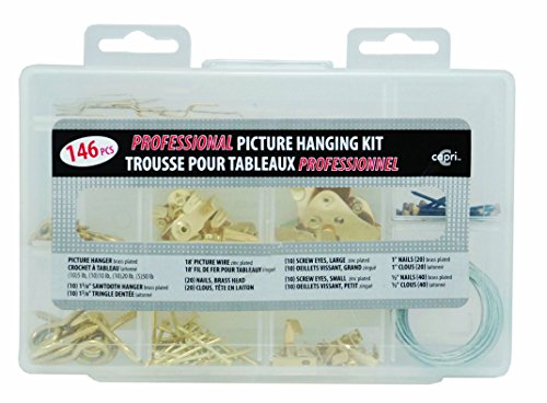 - Professional picture hanging kit with 146 pieces