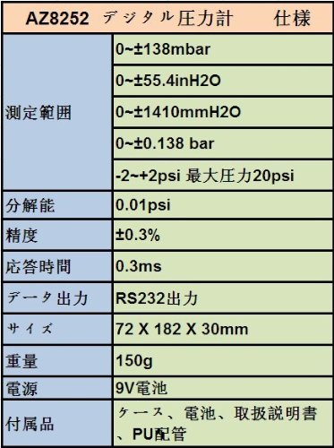 デジタル圧力計[AZ8252]は、圧力を計測するデジタル測定器です。