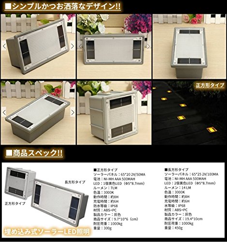 【地面で光る ソーラーLEDライト エクステリア に!!!】 埋め込み式 夜間自動点灯 太陽光パネル 防水 優しい光 【正方形タイプ】