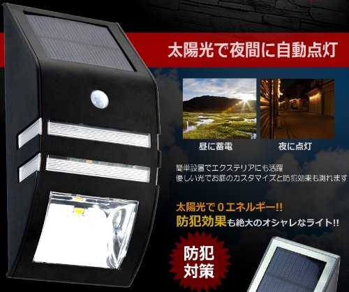 太陽光で0エネルギー!!防犯効果も絶大のオシャレなライト!!