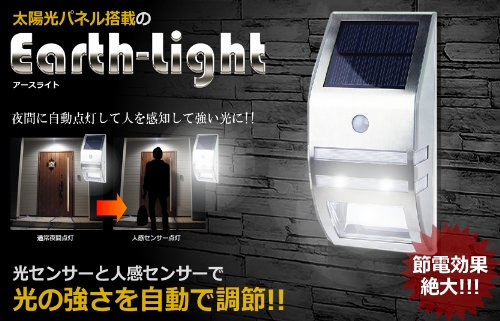 ソーラー 人感 センサー 玄関 照明 LED ライト 【シルバー】