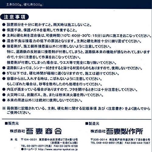 コンクリート面にがっちり固定する 推奨接着剤 視線誘導標をはじめ、反射板、道路鋲、縁石鋲など屋外用途で活躍する安全用品の設置用にお使い下さい。