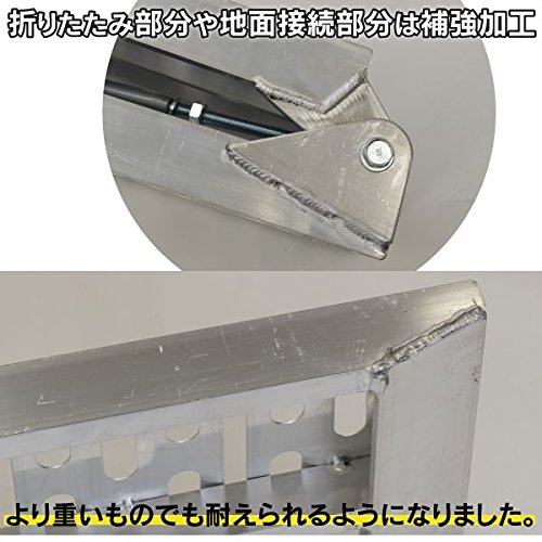 折りたたみ部分や地面接続部分は補強加工しておりますので、より重いものでも耐えられるようになりました。