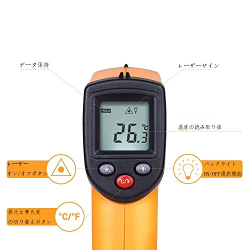 - 安全:FDA、FCC、CE、ROHSが承認されました。レーザークラス 2 測定対象物に触れずに幅広い物体の表面温度を測定することができます、