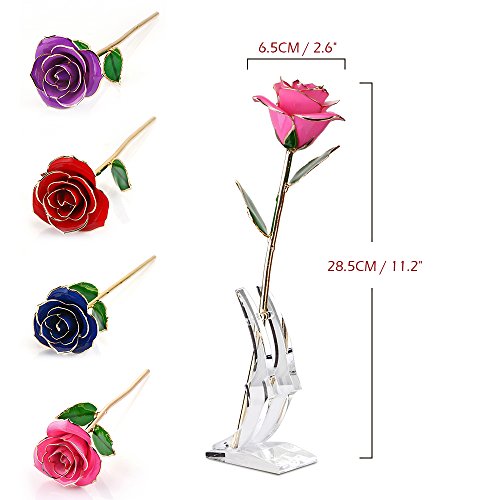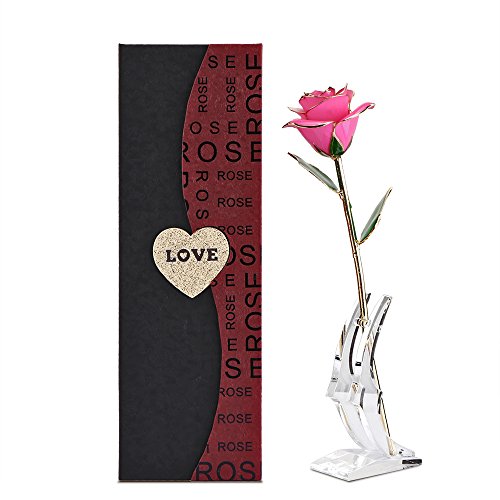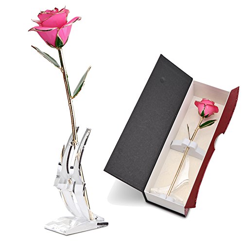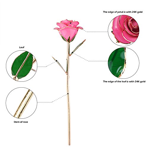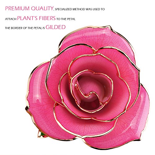 abedoe Long Stem 24 Kゴールドローズフラワーwith Display Stand in絶妙なギフトボックス、ベストプレゼント記念日、ロマンチックThanks Giving日、バレンタインデー、母の日、誕生日ギフト ピンク