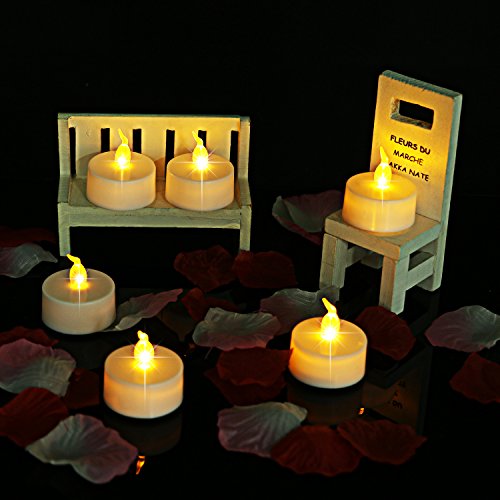 - ロマンチックな雰囲気を作成 – の外観をと、炎のティーライトは点滅LEDオフ本物のキャンドルを持つ雰囲気を作成すると、「安全な方法の特別な思い出のキャンドルセットです。このバッテリーティーライトは装飾結婚式、パーティに最適、庭園、パティオ、デッキ、提灯、レストラン、子供用プロジェクトでは、センターピースなどに活用することができます。