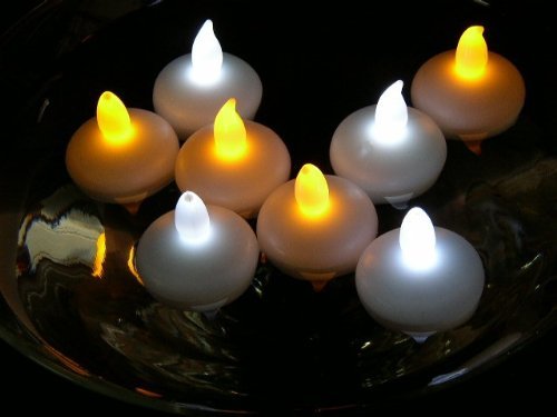 VARIETY OF USAGE: Not only that they serve for illumination purposes but they can be used as decorations to be placed on votive candle holders.. Each package contains a set of 24 tealights powered with cr2032 batteries that last about 80 hours of relative time when lit continuously. Batteries are also replaceable. It can be used by the user at will at any time of the day or any occasion. They are water activated, light up in contact with the water. These water resistant candles create serene pictures on ponds or in fountains at weddings, receptions, or at home. Grace your space or event with our floating candles. Features: 1. Energy saving, can be used over and over again. 2. Long life battery included, can last up to 80 hours, much longer than traditional tealights. And you can replace the battery when the power run out. 3. Uses CR2032 button cell batteries that are inexpensive and readily available 4. LED bulbs have an average life span of 200,000 hours 5. Each value bulk pack contains individually wrapped LED tea lights with battery installed 6. Fits in any votive or tea light holder 7. Water activated sensor on the bottom of the candle Operation: 1. These Floating LED Lights light up in contact with the water. Just dry them off and use again. 2. To replace battery, please just twists the bottom off. Package Contents Set of 24 Floating LED Tea Light Candles