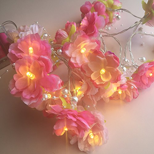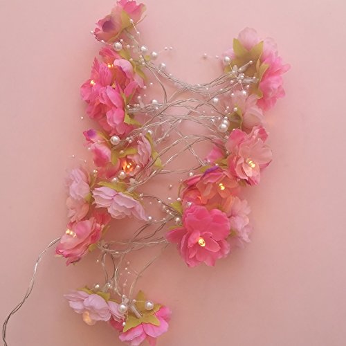 20 LEDフェイク花ロマンチック文字列ライト、電池式フェアリーウェディング花柄パーティー、ウェディング、インドア、庭飾り女の子の部屋ドレッシングテーブルミラー装飾