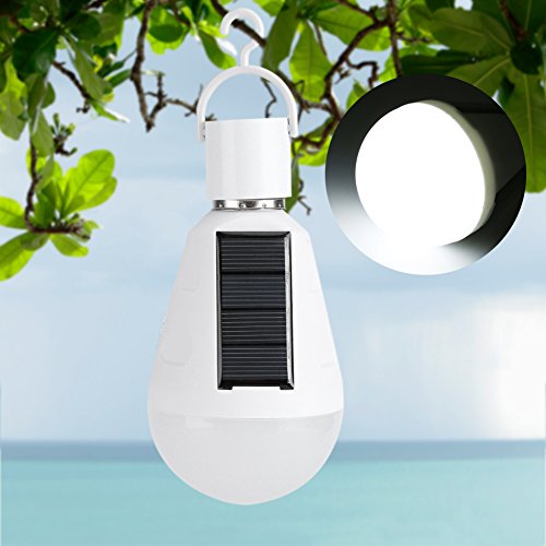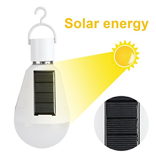 Acogedor ソーラー電球 LEDソーラーライト 緊急用の照明ランプ 便利 IP55防水 省エネルギー フック付き 7W(ホワイト)(A)