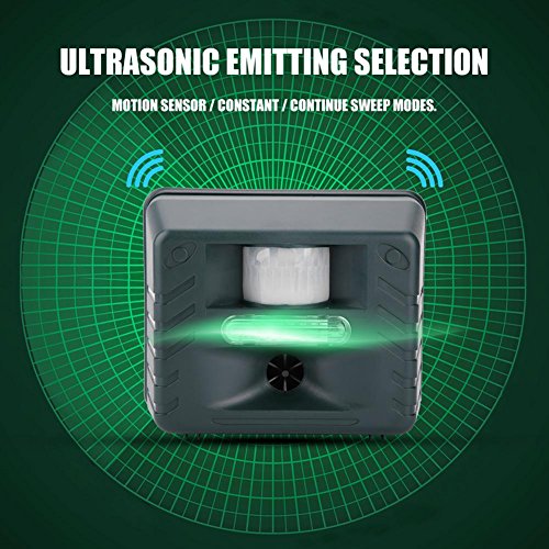 この製品は、ユニークな音波ハラスメント&動物捕食者の音、強烈なフラッシングストロボライトの消失、および不要な害虫を抑えるための修正された超音波を利用しています。