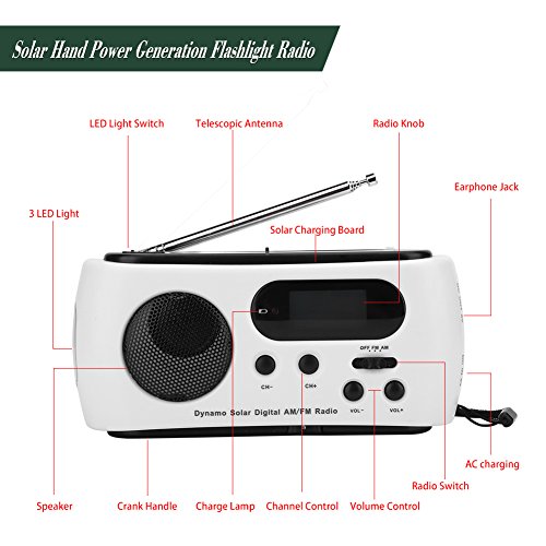 Acogedor ラジオ ソーラーラジオ LEDライト付き ポータブルラジオ 多機能 多用途緊急用品 省エネルギー 緊急時に対応 ホワイト