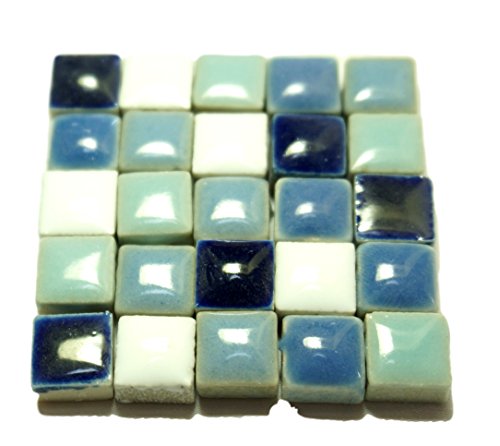 モザイクタイル 陶器 ばら 10㎜角 レトロ調 ブルー系4色 + 白混合 10㎜角 クラフト ハンドメイドに(300g)
