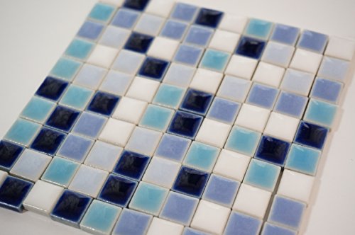 - 【 色 】 水色、淡い青、濃い青、紺、白の5色混合 (タイル裏面:灰色)