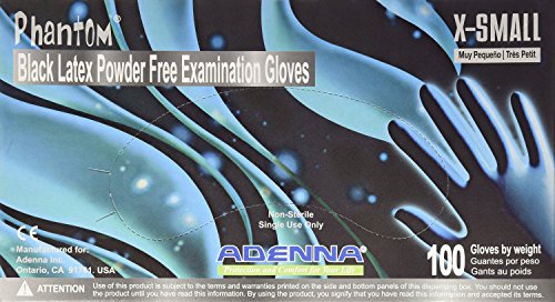 ADENNA PHANTOM Latex Powder Free Exam Gloves (Black, X-Small) [並行輸入品]