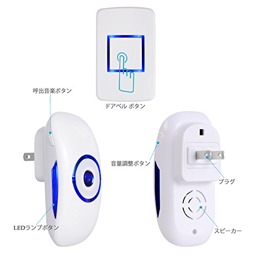 Adoric lifeワイヤレスチャイム ドアベル インターホン 呼び鈴 親機&室内子機セット 電池式 配線不要 防水防塵 LEDランプ点滅 4段階音量調節可能 呼出音楽36曲 最高300Mの無線範囲 家庭 レストラン 事務所 ホテル 屋外 工場 ナースコール介護 玄関 防犯などに使用可能 送信機1個 受信機2個