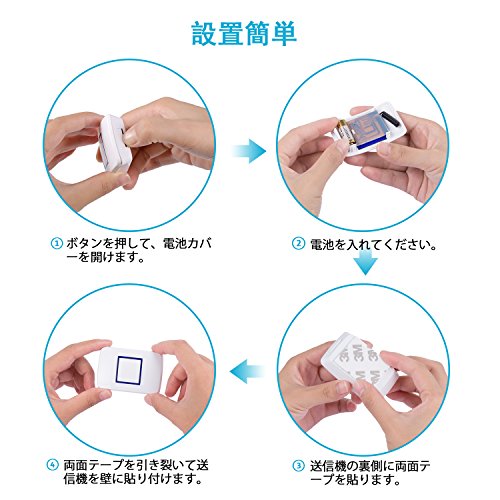 - ♪二ヵ所に設置可能:受信機は2個セットなので、二ヵ所に設置可能です。家のどこにいても音を聴き取ることができます。設定などは必要ございませんが、受信機がコンセントにいれて、送信機それぞれに電池を入れたら、お好きな場所に設置するだけでお使いいただけます。