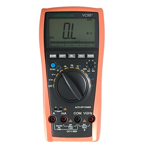 AideTek 高精度デジタルマルチメーター 日本語説明書 アナログバー表示付 オート/手動レンジ切替 標準/ワニ口/温度リード 単4電池動作 6000カウント VC99+