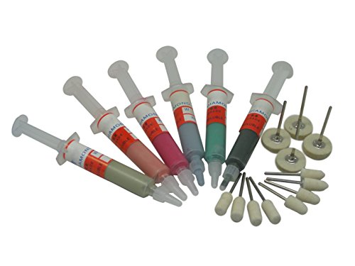 - 各種金属磨き・研磨の最終磨き工程に、油溶性ダイヤモンドペーストのお得な6、12、24本組、便利なフェルトバフ3種とのセットも