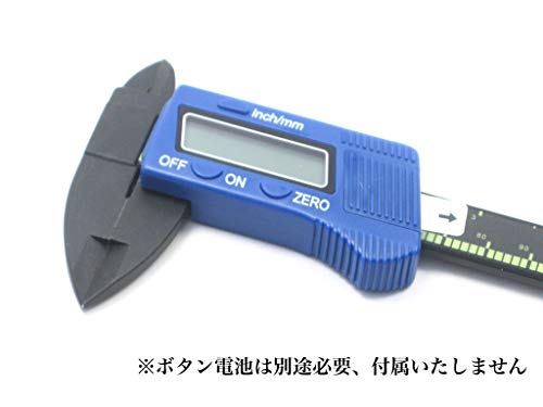 - カラー:ブルー ・測定範囲:0-150mm ・計測単位:0.1mm ・電源:ボタン型電池SR44/LR44 1.5V もしくは CR2032 3V(電池は別途必要、付属いたしません) ・本体サイズ:横幅 約240mm 縦 最小15-最大80mm ・重量:約60g