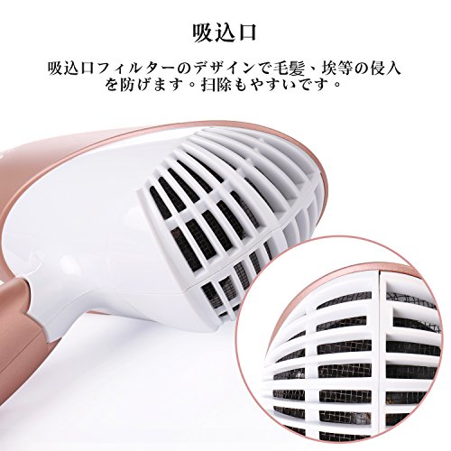 Aidodo ドライヤー ヘアドライヤー 大風量 マイナスイオン 速乾 人気 折りたたみ ヘアードライヤー 軽量1200W スピードドライ 風温&風量調節可 ピンクゴールド