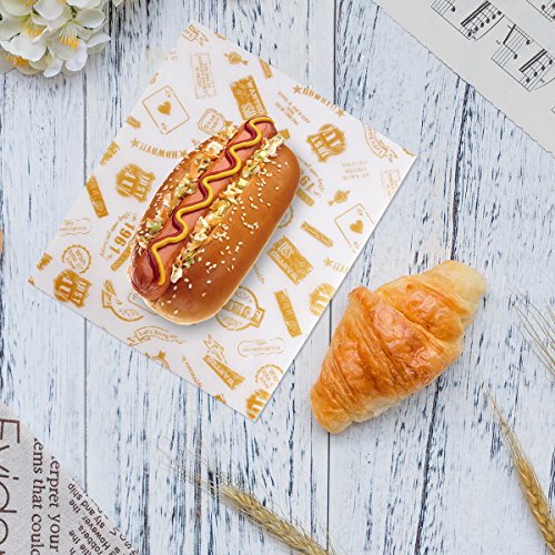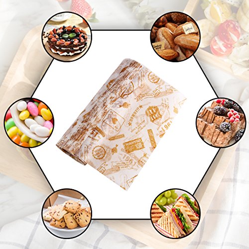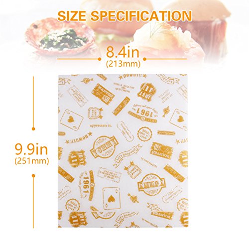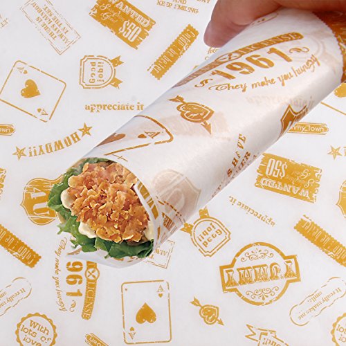 食品ストレージFlats – AIeVe 50個グリースプルーフ用紙防水ドライワックスペーパー食品ストレージラップフラット使用のチーズ、フルーツ、野菜、ボウルカバー、ハンバーガー用紙