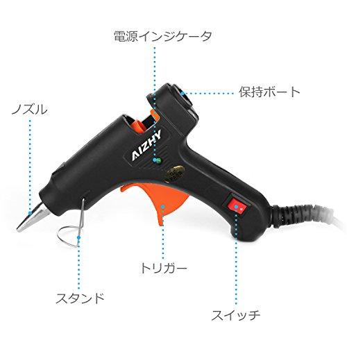 【Aizhy】高温 グルーガン 小型グルーガン ボンドガン ピタガン 手芸 クラフト DIY 接着工具グルーガン スイッチ付き高温タイプ クラフト作成に ご家庭やオフィス エレクトロニクス産業で簡単・綺麗に包装や修理プラスチック用グルーガン 強力粘着溶融グルースティック30本付 ブラック