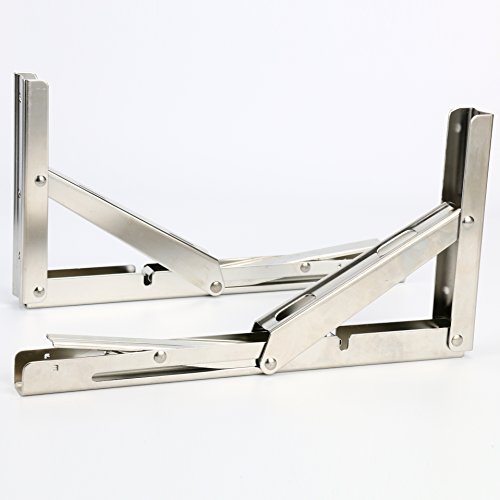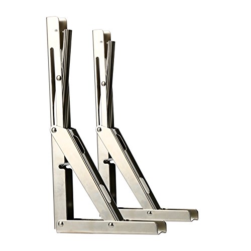 amarine-made 2個Heavy Dutyステンレススチール折りたたみシェルフベンチテーブル折りたたみシェルフブラケット、最大負荷: 660lb / 300kg、ロングリリースアーム