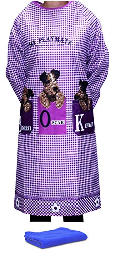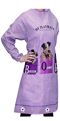 ロング スモック 大人 長袖 割烹着 絵画 ガーデニング 作業着 かっぽう着 保育士 保育用 幼稚園 ギンガム チェック 犬柄 フリーサイズ 犬 (パープル/紫)
