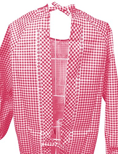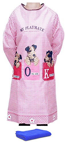 ロング スモック 大人 長袖 割烹着 絵画 ガーデニング 作業着 かっぽう着 保育士 保育用 幼稚園 ギンガム チェック 犬柄 フリーサイズ 犬 (ローズピンク)