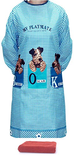 - かわいいエアデール・テリア犬の柄の大きな2つのポケットがポイント♪ 家事・作業に便利な30×30cmのマイクロクロス付き