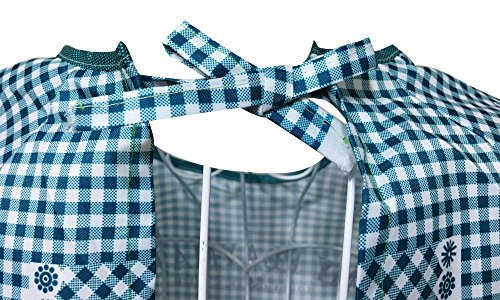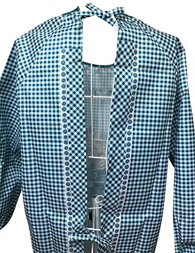 ロング スモック 大人 長袖 割烹着 絵画 ガーデニング 作業着 かっぽう着 保育士 保育用 幼稚園 ギンガム チェック 犬柄 フリーサイズ 犬 (グリーン/緑)