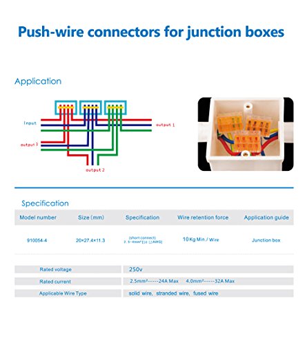 革新的な安全性とクイックワイヤーコネクター。むいたりテーピングする必要はありません。また、からまりません。防水、防塵。画期的なワイヤー接続を実現。ワイヤーをジョイントに挿入し、カバーをペンチで抑えるだけで誰でも簡単、安全に接続することができます。すっきりと美しい外観。さらに、多少の防水、耐熱、防塵、電気ショックもありません。