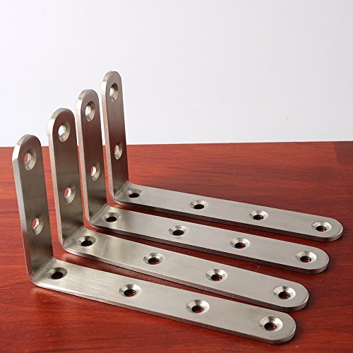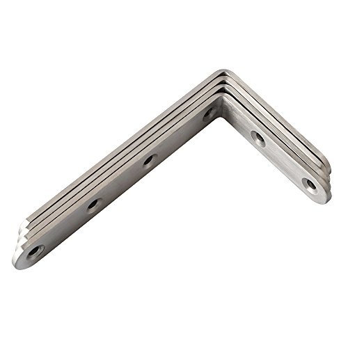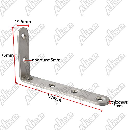 Alise ステンレススチール 頑丈なL字型装飾コーナーブレースジョイント角度ブラケット シェルフブラケット 壁吊り125x75ミリ/5x3インチ マット仕上げ 4個セット 125mmX75mm J5207-4P